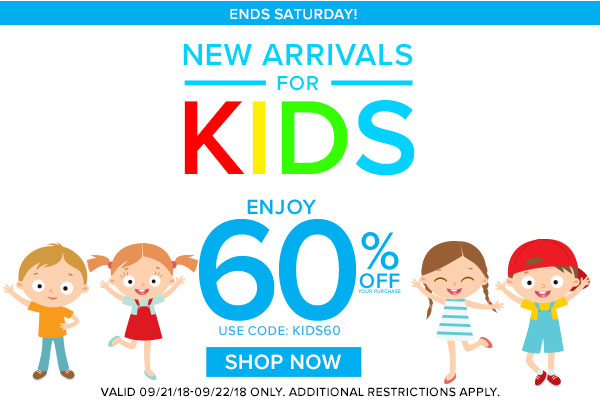Schoola.com is offering 60% off all orders of kids' new arrivals. Be sure to use promo code KIDS60 at checkout for the discount.  Sale ends today, September 22nd.